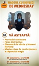 Program: Ghicitori și pozne de la însăși Wednesday; concursuri și dansuri distractive; discotecă cu hârtie; master-class de săpun aromat, dulciuri delicioase.