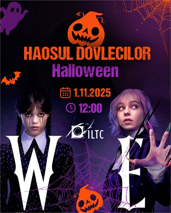 Приходите 1 ноября (суббота) в ILTC, где вас ждёт настоящее хэллоуиновское приключение вместе с любимыми героинями — Уэнсдэй и Энит!